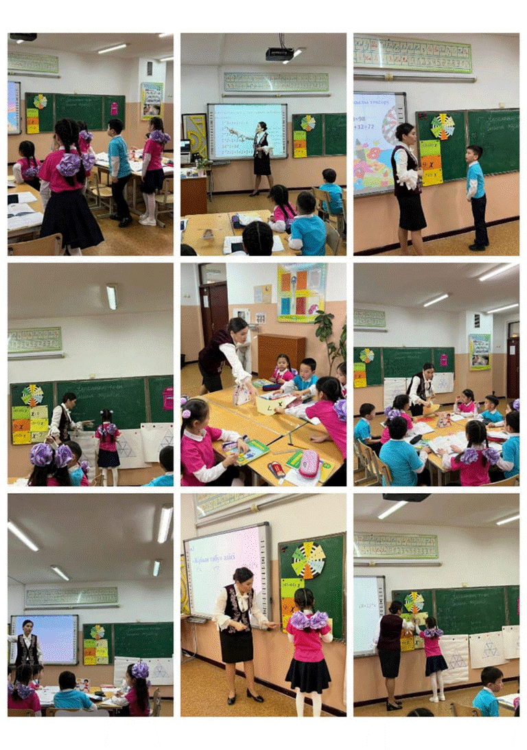 Сабақ барысында оқушылар мұғалімнің көмегімен оқулықта берілген тапсырмаларды орындап, топтық және жеке жұмыстар жүргізді. Әр оқушы пәнге деген қызығушылықтарын білдіріп, сабаққа белсенді түрде қатысты. Жаңа тақырып бойынша оқушылар көбейту және бөлуді орындауда 0 мен 1 сандарының қасиеттерін қолданып, санды 0 санына бөлуге болмайтынын үйренді. Сонымен қатар, өрнектерді жазу барысында көбейту және бөлу амалындағы 1-дің қасиетімен танысты. Ашық сабақ өз мақсатына жетіп, жоғары деңгейде өткізілді.