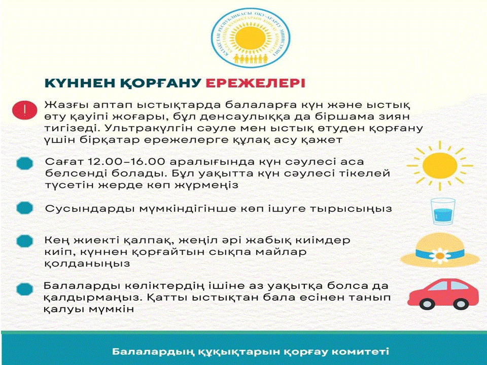 Осы ретте ҚР Оқу-ағарту министрлігі Балалардың құқықтарын қорғау комитеті жаз айының балалар үшін қауіпсіз әрі жайдары өтуі үшін бірқатар ұсыным әзірледі.