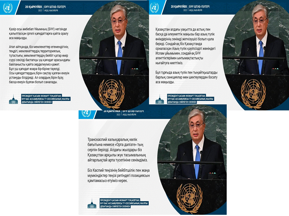 ПРЕЗИДЕНТ ҚАСЫМ-ЖОМАРТ ТОҚАЕВТЫҢ БҰҰ БАС АССАМБЛЕЯСЫ 77-СЕССИЯСЫНЫҢ ЖАЛПЫ ДЕБАТЫНДА СӨЙЛЕГЕН СӨЗІНЕН