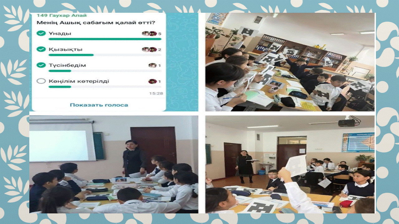 Алатау ауданы 149ЖББ мектепте Тарих апталығы аясында 05.12.2022 жылы 6-сынып оқушыларымен “Ұлы Жібек жолының түркі бөлігі тақырыбында ашық сабақ өтілді.Сабақ барысында “flippity.net” технологиясы арқылы топқа бөлінді,бейне фильм көрсетілді. “Пликерс кодтары арқылы үй тапсырмасы сұралды,және тб жаңа технологиясымен сабақ өтілді.Сабақ өз мақсатына жетті,мұғалімдер өзара әдіс алмасты.