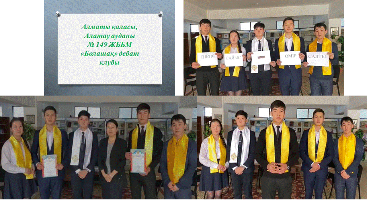 Алатау ауданы 149 ЖББ мектепте “Болашақ” дебат клубы мүшелерінің қатысуымен “Пікірсайыс- өмір салты” тақырыбында челлендж түсірілді. Мақсаты; пікірсайыстың оқушылар үшін маңызын түсіндіру.