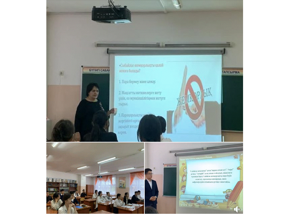 Тәрбие сағатында оқушылар «сыбайлас-жемқорлық» терминінің этимологиясына тоқталды. Оқушылар кез-келген жағдайда жемқорлықтың алдын алу, күресу жолдарын ұсынды.