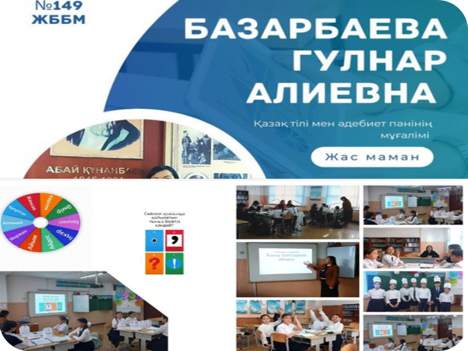 6 "Е" сыныбына "Тыныс белгілерінің айтысы" тақырыбында ашық сабағын өткізді. Ашық сабағында "Wordwall" платформасы арқылы оқушыларды топқа бөліп, жаңа сабақтың тақырыбын сұрақ қою арқылы бастады. Оқушылар "Білгірлер мен тапқырлар" болып екі топқа бөлінді. Әр оқушы үтір, нүкте, тырнақша, сызықша, леп белгісі, сұрақ белгісі болып үй тапсырмаларын айтты. Сабақ барысында "Ойлан, тап" әдісі арқылы оқушылар тапсырмалардан түсіп қалған, тыныс белгілерін тауып, өз жауаптарын ұсынды. Сабақты "Көңілді смайлик" әдісі арқылы қорытындылады.