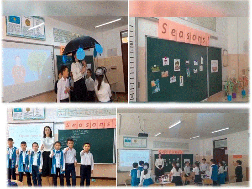 Ағылшын тілі пәні мұғалімі Қабылан Айдана Базарханқызы 3 "Г" сыныбымен "Seasons" тақырыбында ашық сабақ өтті.