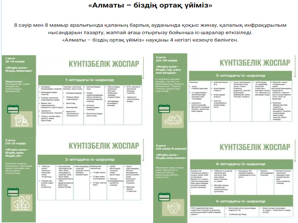 «Алматы – біздің ортақ үйіміз» науқаны 4 негізгі кезеңге бөлінген.
