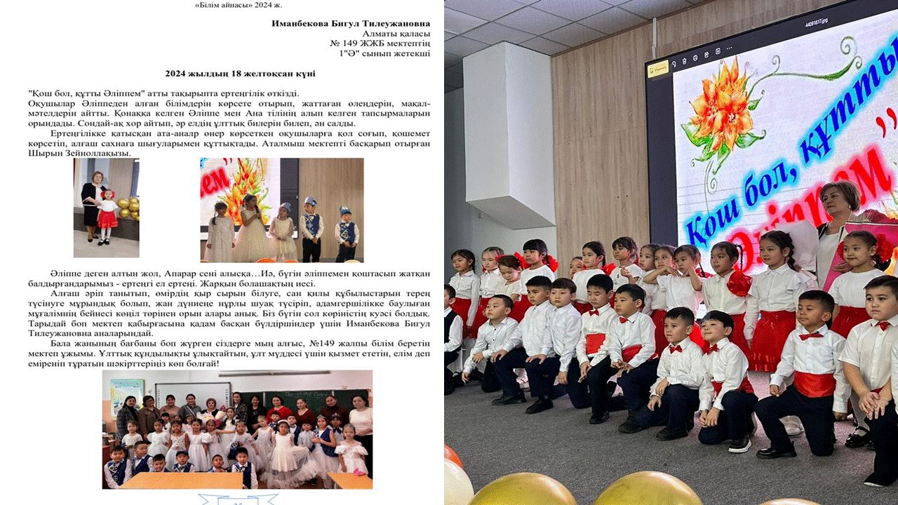 1 “Ә” сыныбымен “Қош бол, құтты Әліппем!” атты тақырыпта ертеңгілік өткізді.