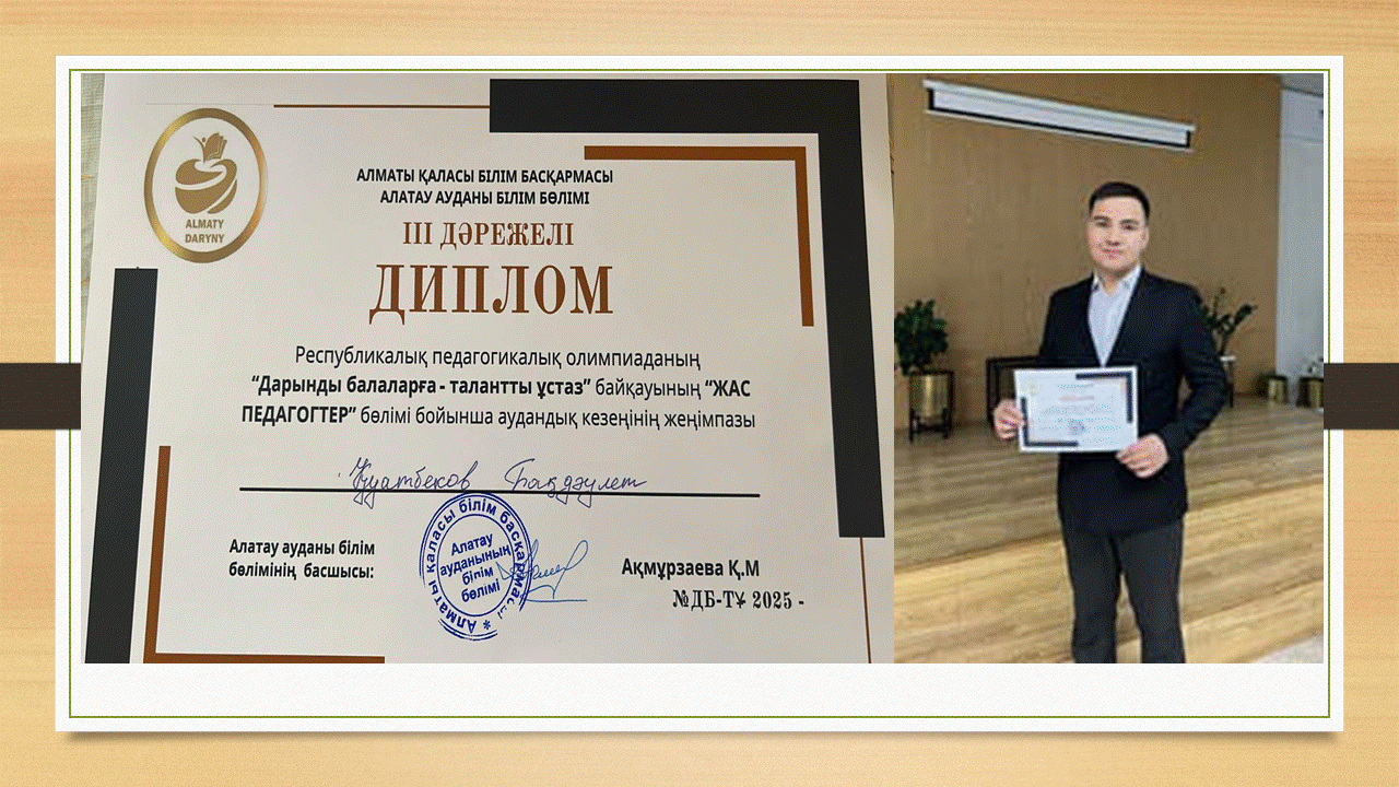 «Дарынды балаларға-талантты ұстаз» республикалық педагогикалық олимпиаданың аудандық кезеңінің жеңімпазы