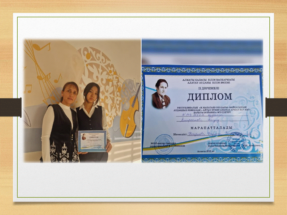 Республикалық “М.Мақатаев оқулары” байқауының аудандық кезеңінде “Айтып өткен ақында арман бар ма?” бағыты бойынша N149 ЖББ мектеп оқушысы Амирханова Айсұлу ІІ дәрежелі дипломмен марапатталды.