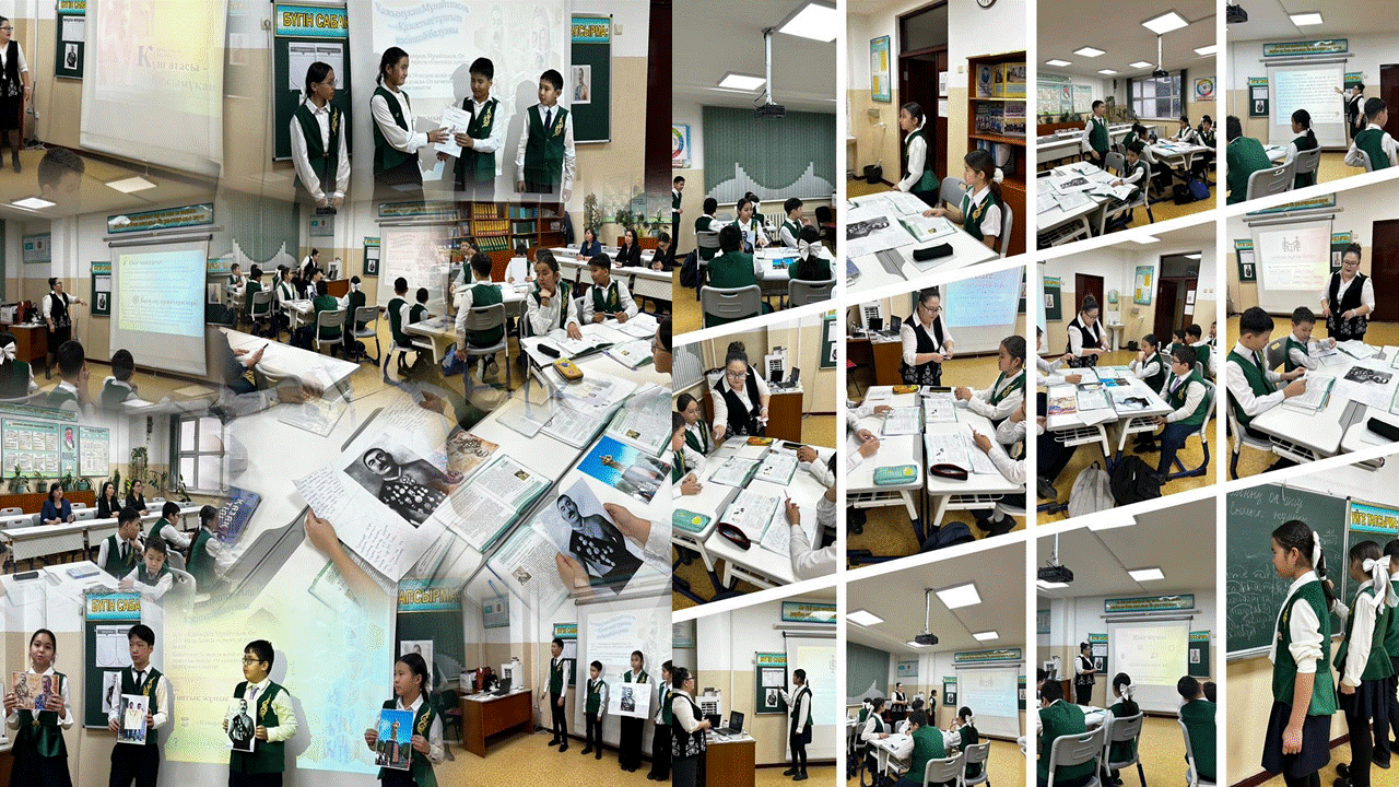 6.3.2.1 -жанрлық және стильдік ерекшеліктеріне сай құрылымын сақтай отырып, мінездеме, өмірбаян құрастырып жазу. Осы мақсатқа сай сабақ барысында “Бес қадам” әдісі арқылы үй тапсырмасы сұралып, “Панорама” әдісі арқылы топтық жұмыс жүргізілді. Әрі қарай “Ойлан, жұптас, бөліс” әдісін қолдана отырып жұптық жұмыс жасатса, “Білім қоржыны” әдісі арқылы оқушылар жеке жұмыстарын морфологиялық талдау арқылы көрсетті. Сабақ соңында “Google” әдісі арқылы кері байланыс алынып, үй тапсырмасы берілді. Ашық сабақққа қатысушы мұғалімдер тарапынан “өз мақсатына жетті” деген баға алды.