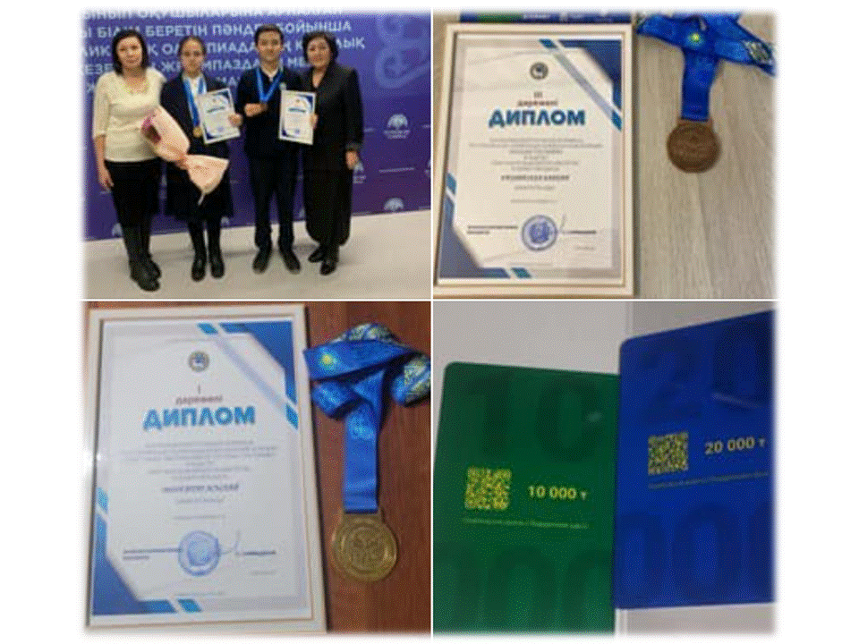 Алматы қаласы Білім басқармасы «Алматы дарын» Республикалық ғылыми-практикалық орталығының ұйымдастыруымен жалпы білім беретін пәндер бойынша 9-11 сынып оқушылары арасында өткен республикалық пәндік олимпиаданың қалалық кезеңінің жеңімпаздары