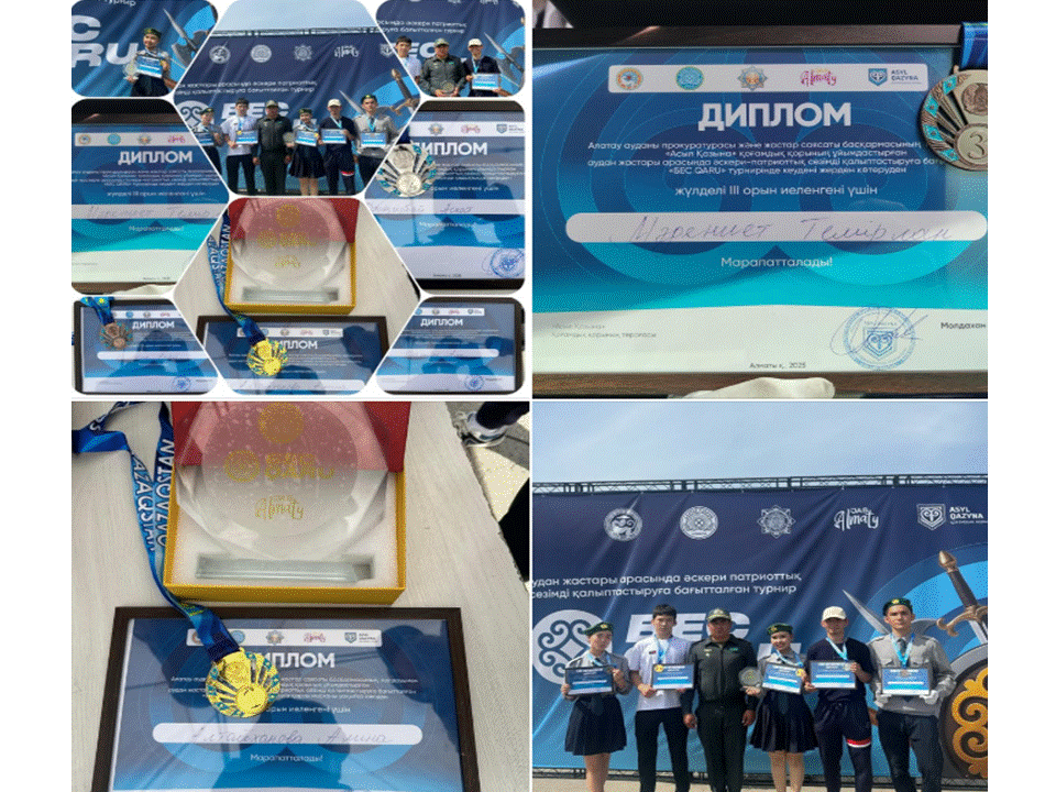 7 мамыр - Отан қорғаушылар күніне орай Алатау ауданы прокуратурасы және жастар саясаты басқармасының “Асыл Қазына” қоғамдық қорының ұйымдастырған аудан жастары арасында әскери-патриоттық сезімді қалыптастыруға бағытталған сайыста мектебіміздің 10 сынып оқушылары жүлделі орындарға ие болды!