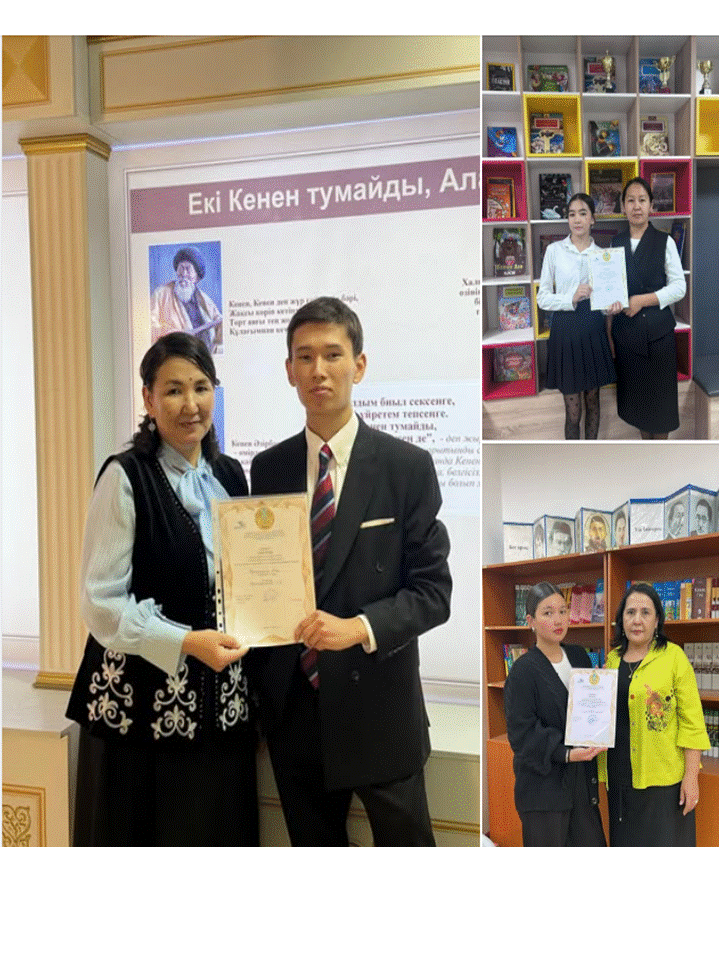 8-11-сынып оқушылары арасындағы "Ақберен" республикалық байқауының аудандық кезеңінде "Аспапта ойнау" номинациясы бойынша Нұрланұлы Аян І орын иеленді. Жетекшісі: Құлназарова А.А. "Көркемсөз оқу" номинациясы бойынша 9 "А" сынып оқушысы Қайратқызы Аружан ІІІ орын иеленді. Жетекшісі: Сламбаева Е.Б. "Эссе жазу" номинациясы бойынша Түгелбаева Таңару Алғыс хатпен марапатталды. иеленді. Жетекшісі: Белибаева Н.С. Жеңісті, жемісті күндеріңіз көп болғай!