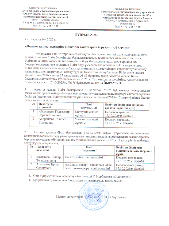 17 қазан 2025 0 1 2 3 4 5 Жалпы орта білім беру ұйымдары педагогтерін аттестаттау туралы бұйрық №676, 17.10.2025ж Осы беттің QR-коды:QR-код этой страницы: