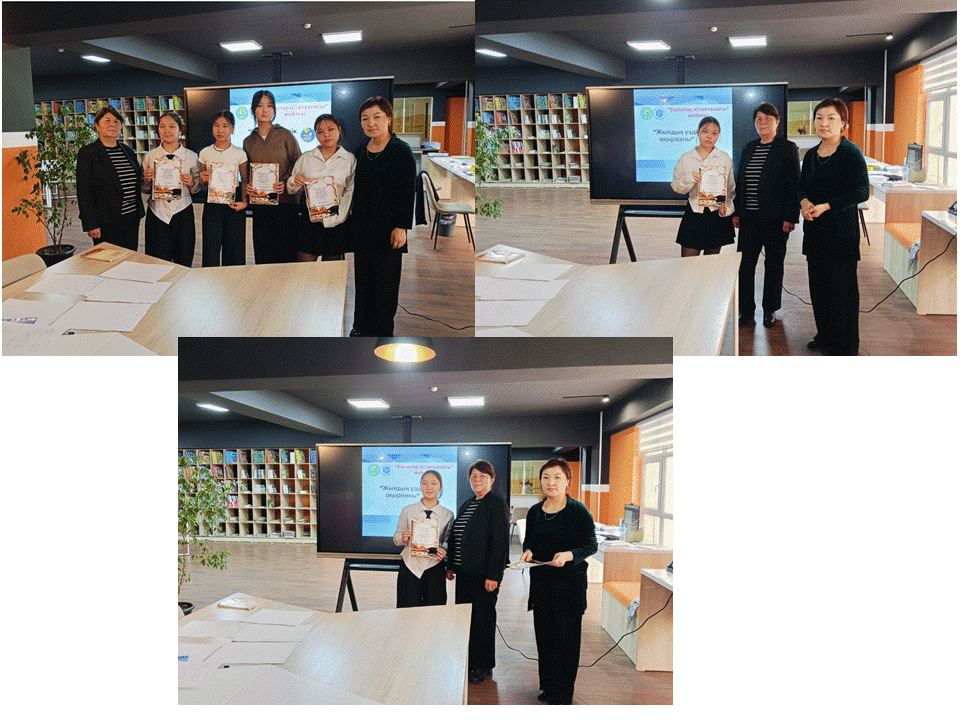 «Жылдың үздік оқырманы» болып мектебімізде 4 оқушы марапатталды. 9«А» сынып оқушысы Телагис Айым 10 «Б» сынып оқушысы Кеулімжан Жасмин 8 «Д» сынып оқушысы Кучкарова Сымбат 8 «А» сынып оқушысы Амангелді Айым оқушылар жоғары деңгейдегі оқу мәдениеттері мен кітапқа деген шынайы қызығушылығы және жыл бойы белсенді оқырман болғандары үшін “Жылдың үздік оқырманы” атағымен марапатталды.