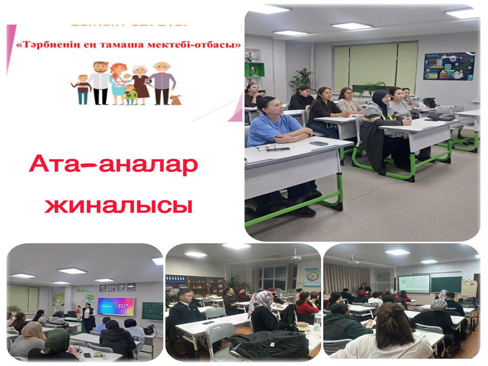 ДТІЖО Г.Базарбаева баланың тәрбиесі ең алдымен отбасынан басталатынын, ата-ананың әрбір сөзі мен іс-әрекеті баланың болашағына тікелей әсер ететінін айтып өтті. Жиналыс барысында отбасының тәрбиелік маңызы, ата-ана мен баланың өзара қарым-қатынасы, отбасындағы үлгі-өнегенің рөлі туралы ой қозғалды. Сонымен қатар ата-аналар өзара пікір алмасып, бала тәрбиесінде кездесетін мәселелер мен оларды шешу жолдарын талқылады.