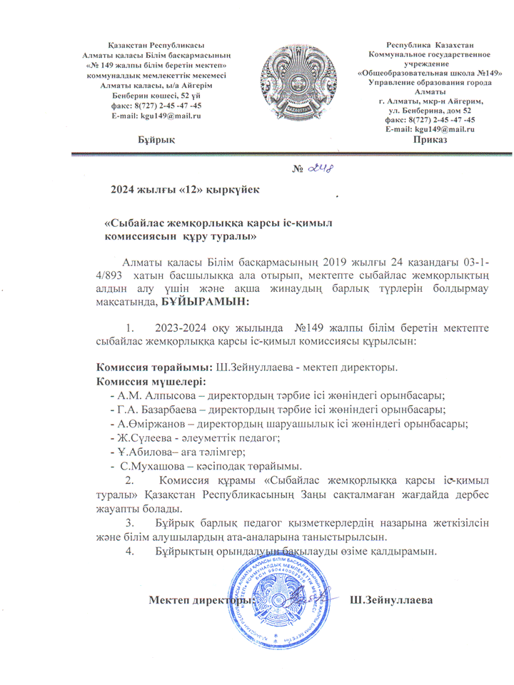 12 қыркүйек 2024 0 1 2 3 4 5 "Сыбайлас жемқорлыққа қарсы іс-қимыл комиссиясын құру туралы" бұйрық Осы беттің QR-коды:QR-код этой страницы: