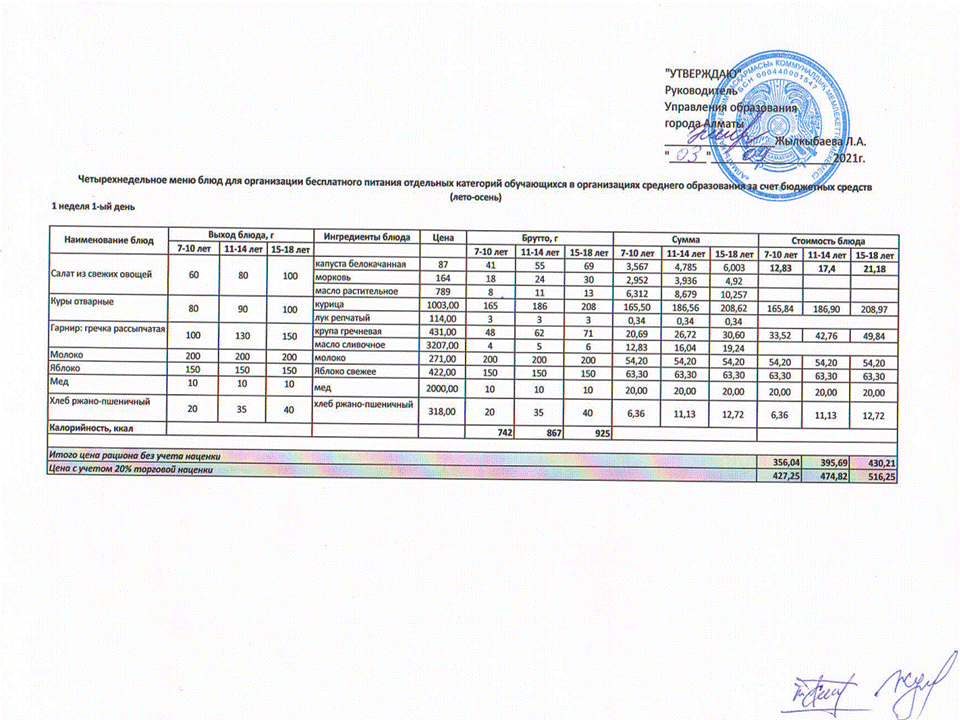 Ас мәзірі 14.09.2021 3 апта 2 күн
