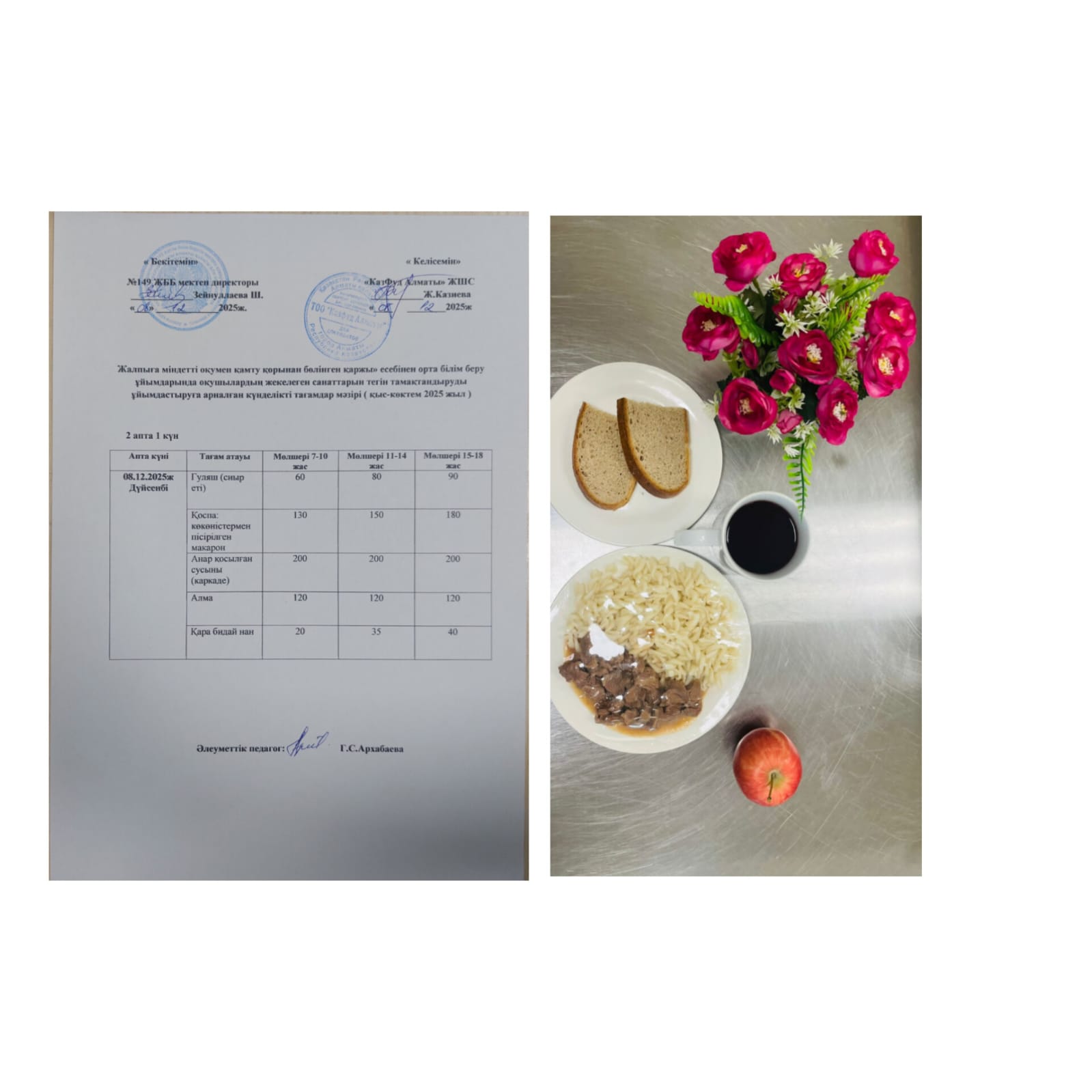 Ас мәзірі 09.11.2021 ж. 3 апта 2 күн