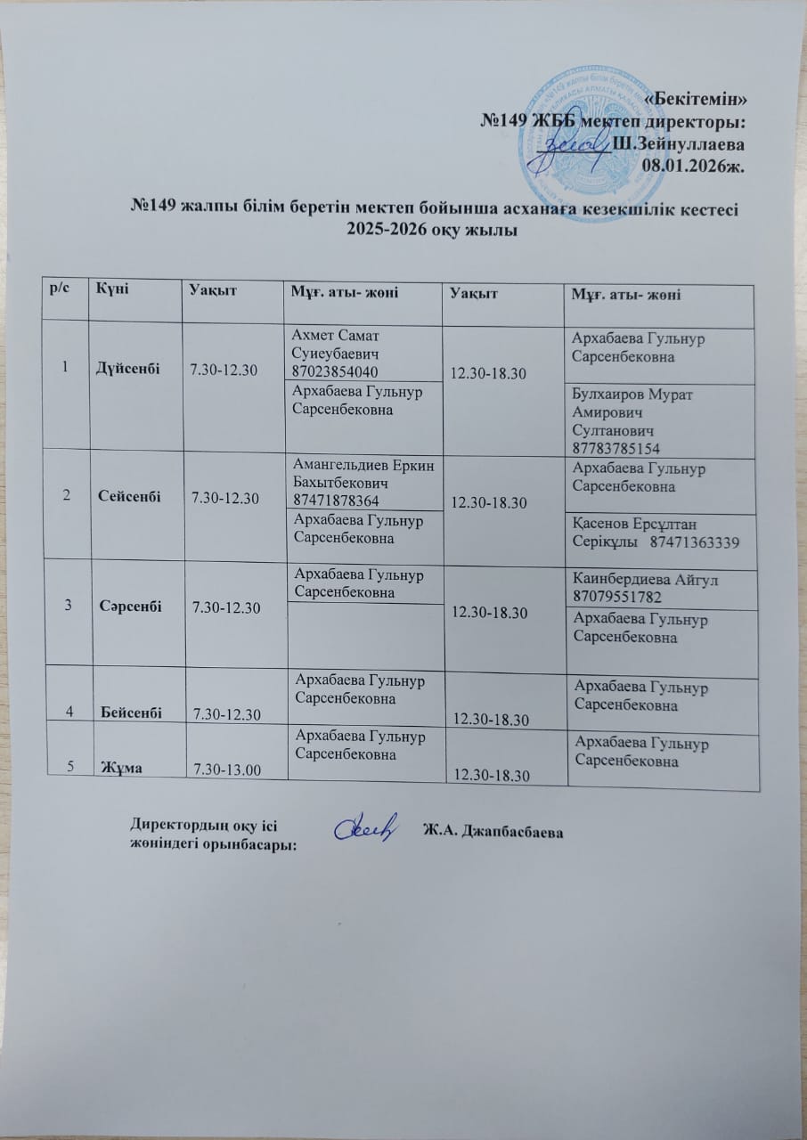 Асхана кезекшілік кестесі